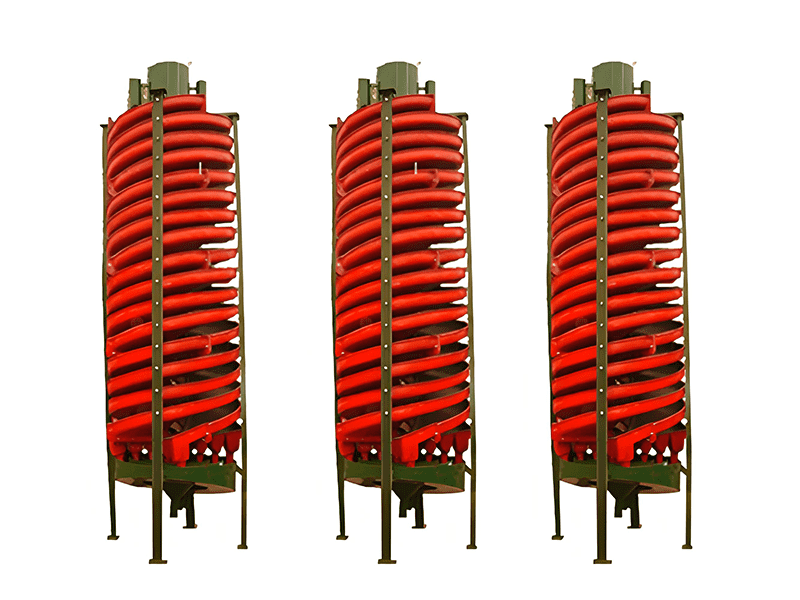螺旋溜槽是一种重选设备,利用矿浆在螺旋回转中产生的离心力实现轻重矿物的分选。矿浆通过给矿槽均匀给入,在螺旋槽面上进行分选,尾端阀块式截取槽将产品按品位分成三种。通过调节阀块位置改变截取宽度,产品集聚斗导出。螺旋溜槽结构简单,无需动力,适用于细微粒物料选别,具有高回收率和分选准确的优势。